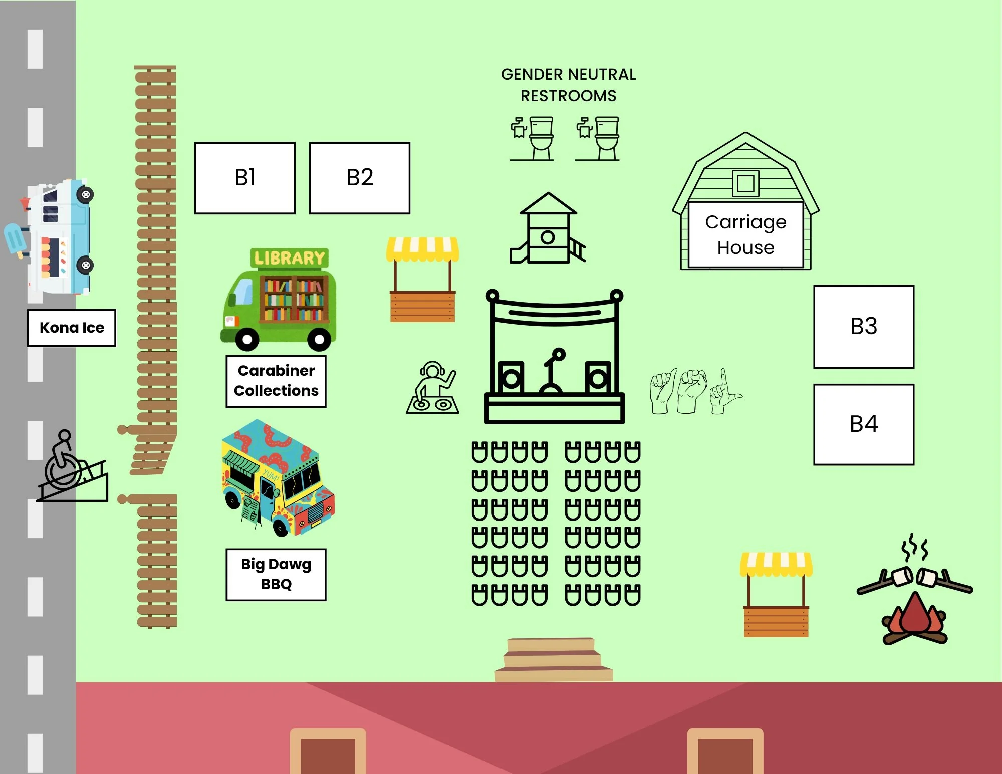 Being an older building, the Astin Mansion does have accessibility barriers. But we are here to help! There is a concrete ramp to a door on the front right side on the mansion to access the indoors portion of the event. To access the outdoors portion of the event, wheelchair users will have to go around the outside of the mansion as the back door directly to the outdoors has stairs. There are four restrooms available at the Astin Mansion. Two small restrooms indoors, and two larger restrooms outdoors. The outdoors restrooms are within a trailer and require steps to access. For wheelchair users, there is an accessible restroom in the office building next to the mansion. The host at the front door can show you where that restroom is located.